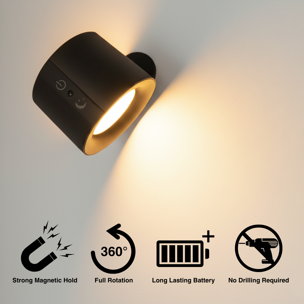 With 3 colour settings (warm, natural and cool), adjustable brightness and 360° magnetic rotation.